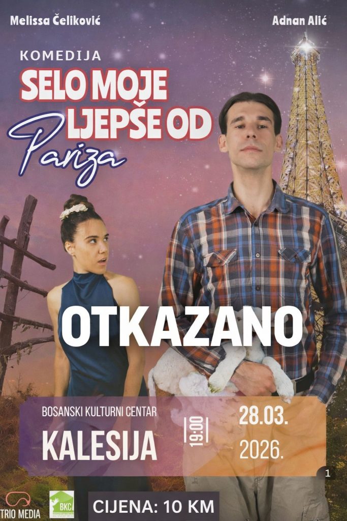 Zbog snijega odgađa se igranje predstave Selo moje ljepše od Pariza, koja je bila zakazana za danas u 19.00 sati. O novom terminu igranja predstave javnost ce biti upoznata na vrijeme.